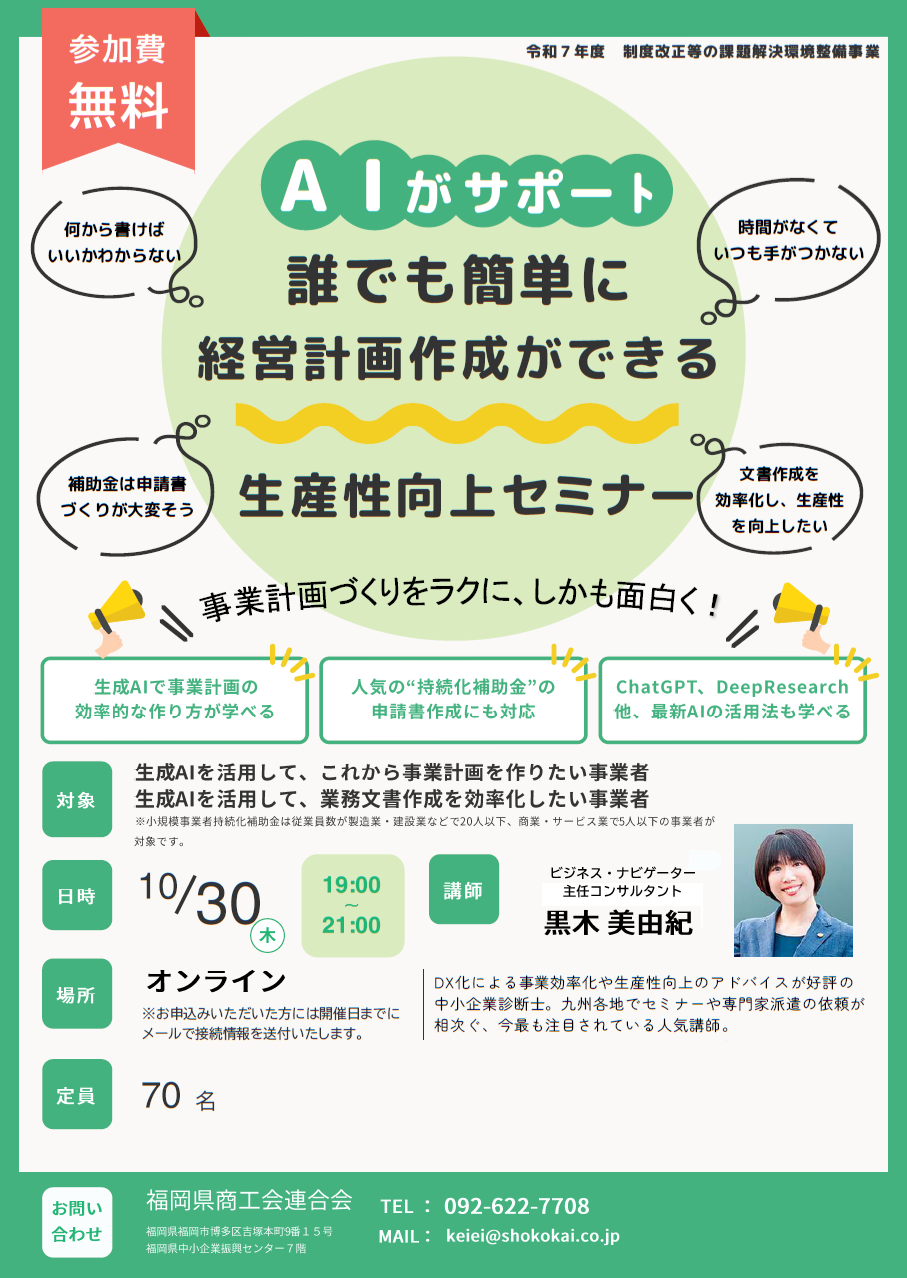 問合せ:福岡県商工会連合会(TEL:092-622-7708、Mail:keiei@shokokai.ne.jp)