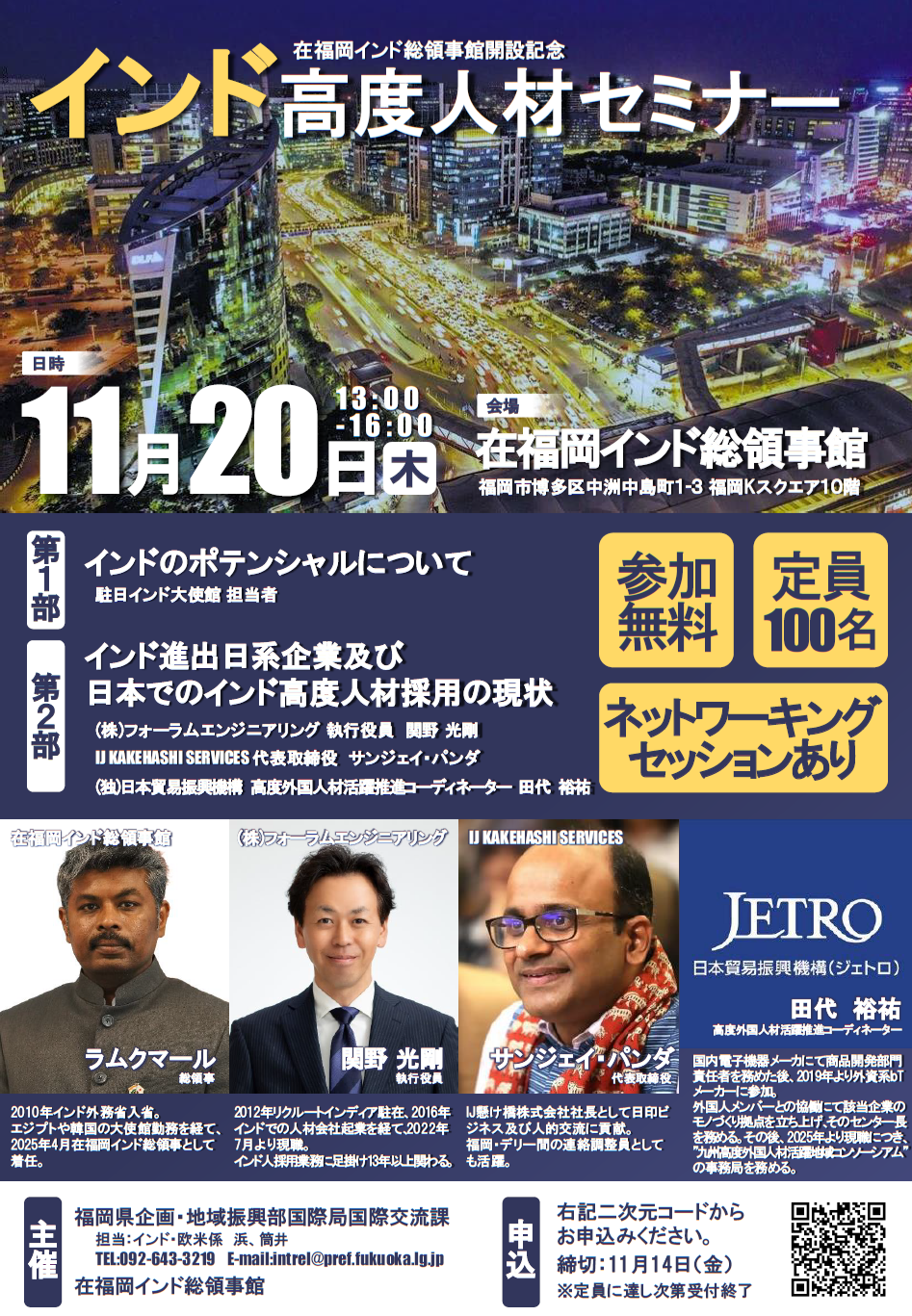 その取組の一つとして、インドのポテンシャルや、日本でのインド高度人材採用の現状をテーマに、以下、セミナーを開催いたします。